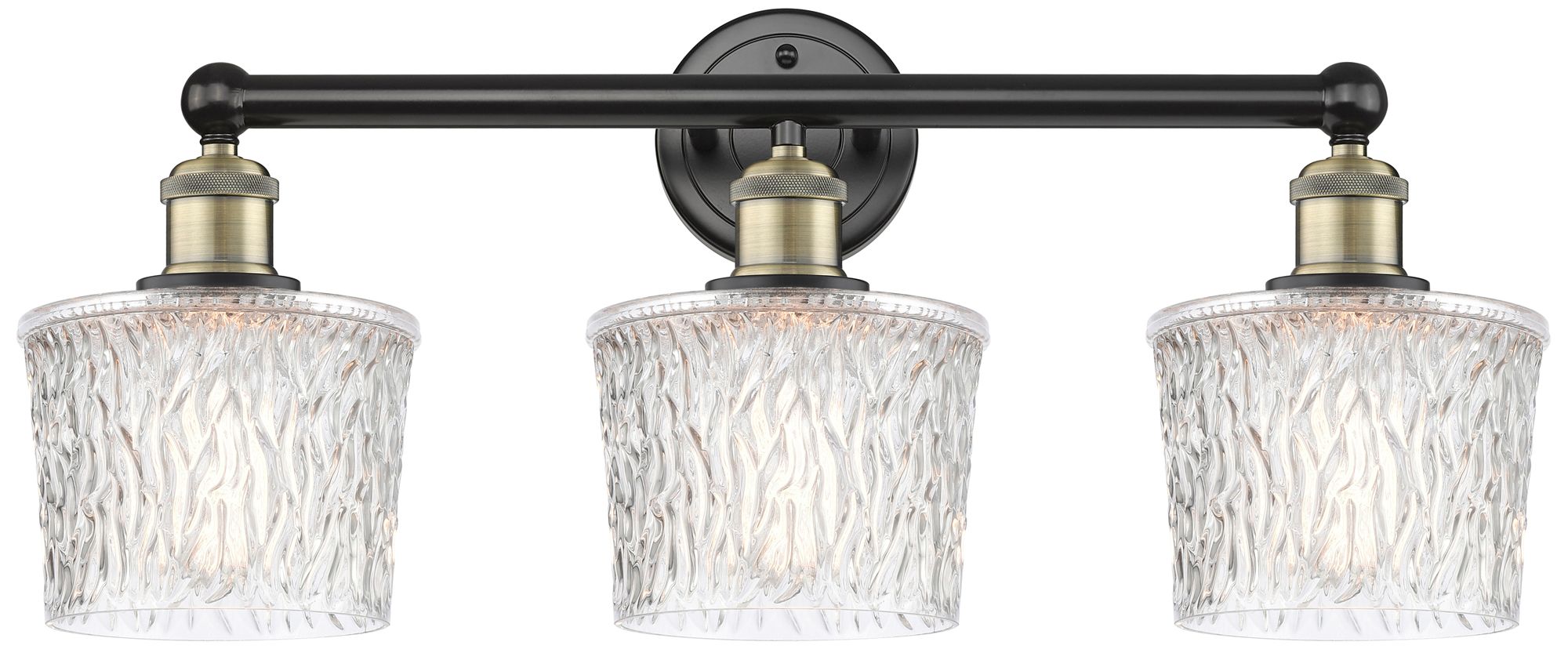 Niagra 24.5"W 3 Light Black Antique Brass Bath Light With Clear Shade