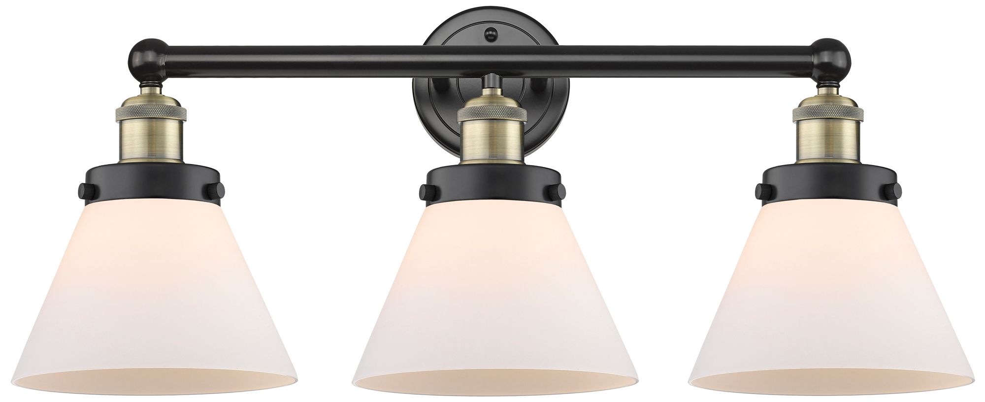 Edison Cone 25.75"W 3 Light Black Antique Brass Bath Light With White