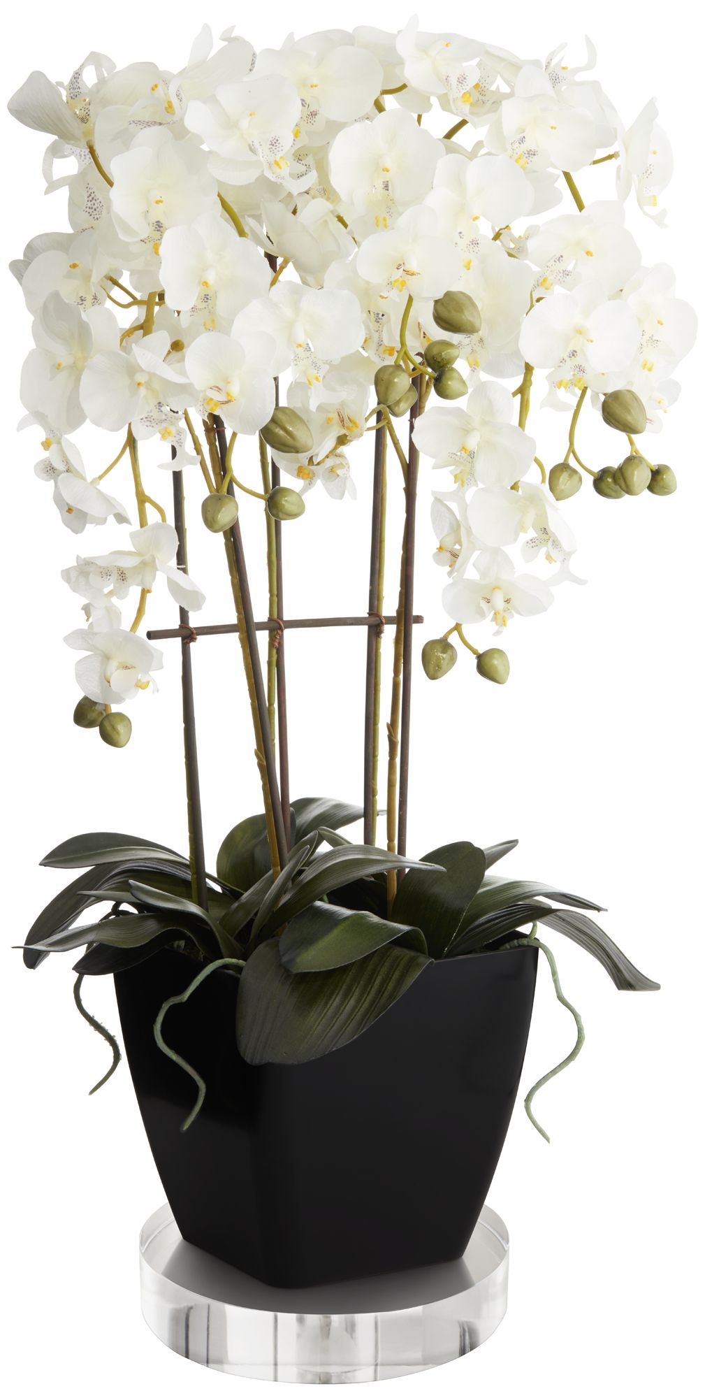 Large White Faux Orchid With 8" Round Acrylic Riser