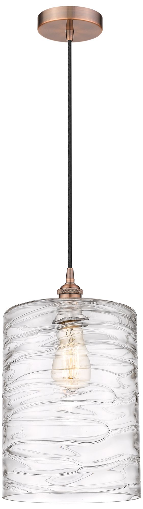 Cobbleskill 9" Mini Pendant - Antique Copper - Deco Swirl Shade