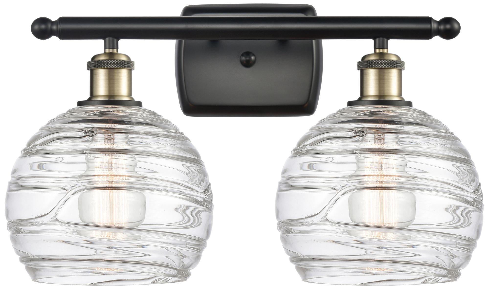 Athens Deco Swirl 2 Light 18" LED Bath Light - Black Brass - Clear Swi
