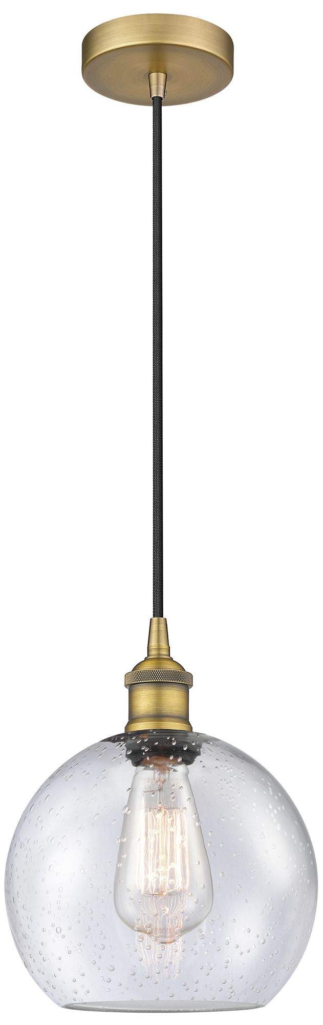 Edison Athens 8" Brushed Brass Cord Hung Mini Pendant w/ Seedy Shade