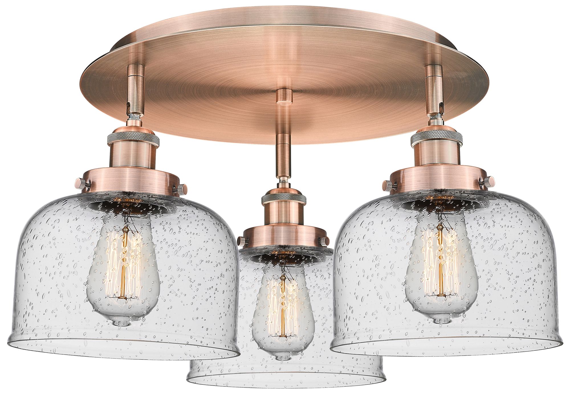 Bell 19.75" Wide 3 Light Antique Copper Flush Mount With Seedy Glass S