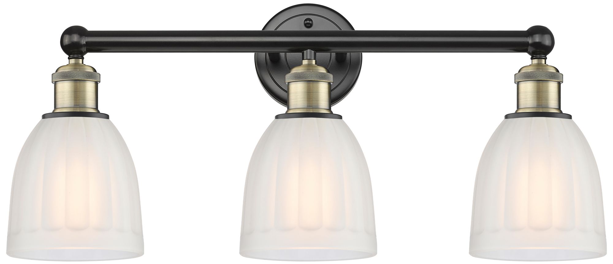 Brookfield 23.75"W 3 Light Black Antique Brass Bath Light With White S