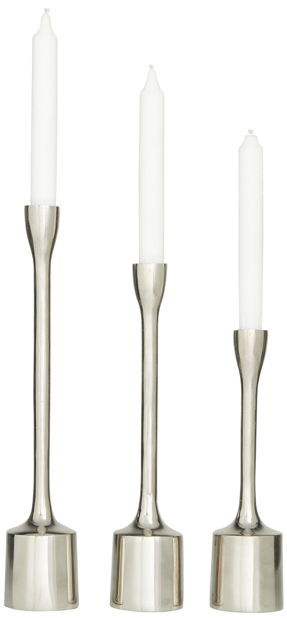 Silver Aluminum Slim Decorative Candle Holder, Set of 3 14", 12", 10"H