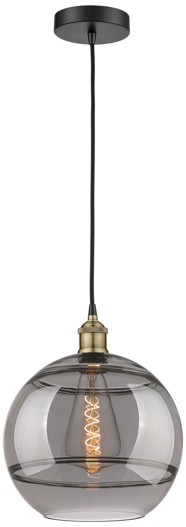 Edison Rochester 12"W Black Brass Corded Mini Pendant w/ Light Smoke S