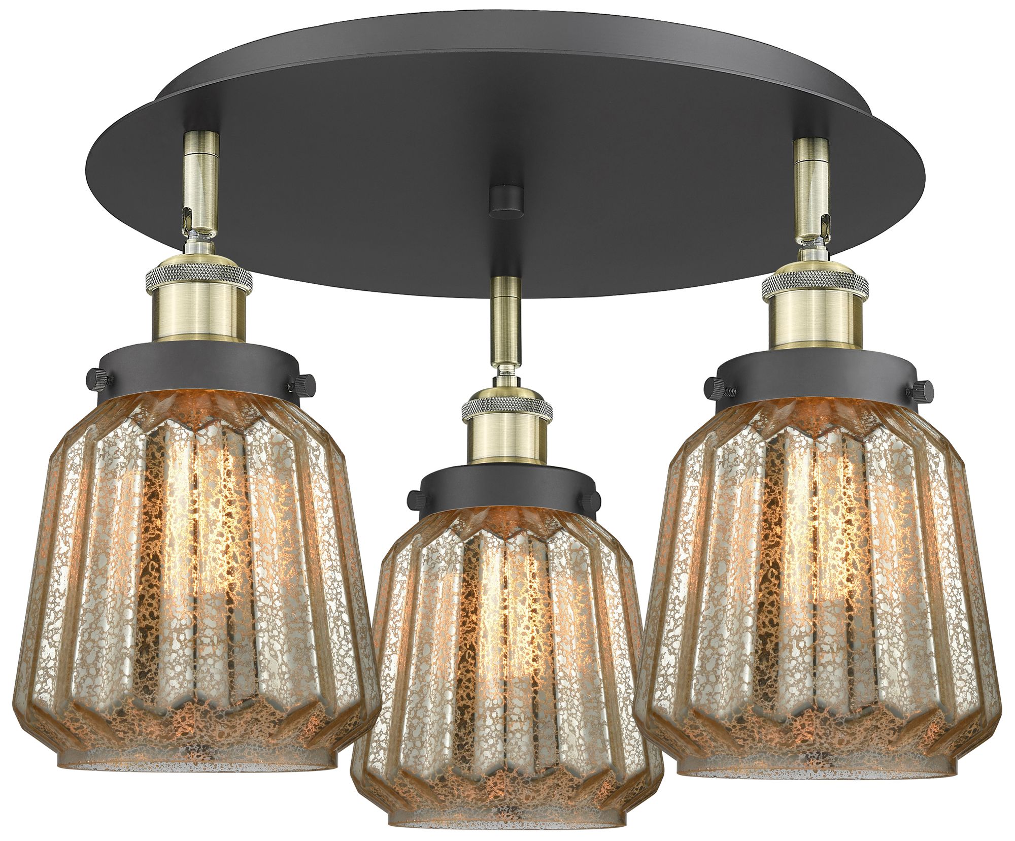 Chatham 18.25"W 3 Light Black Brass Flush Mount w/ Mercury Glass Shade
