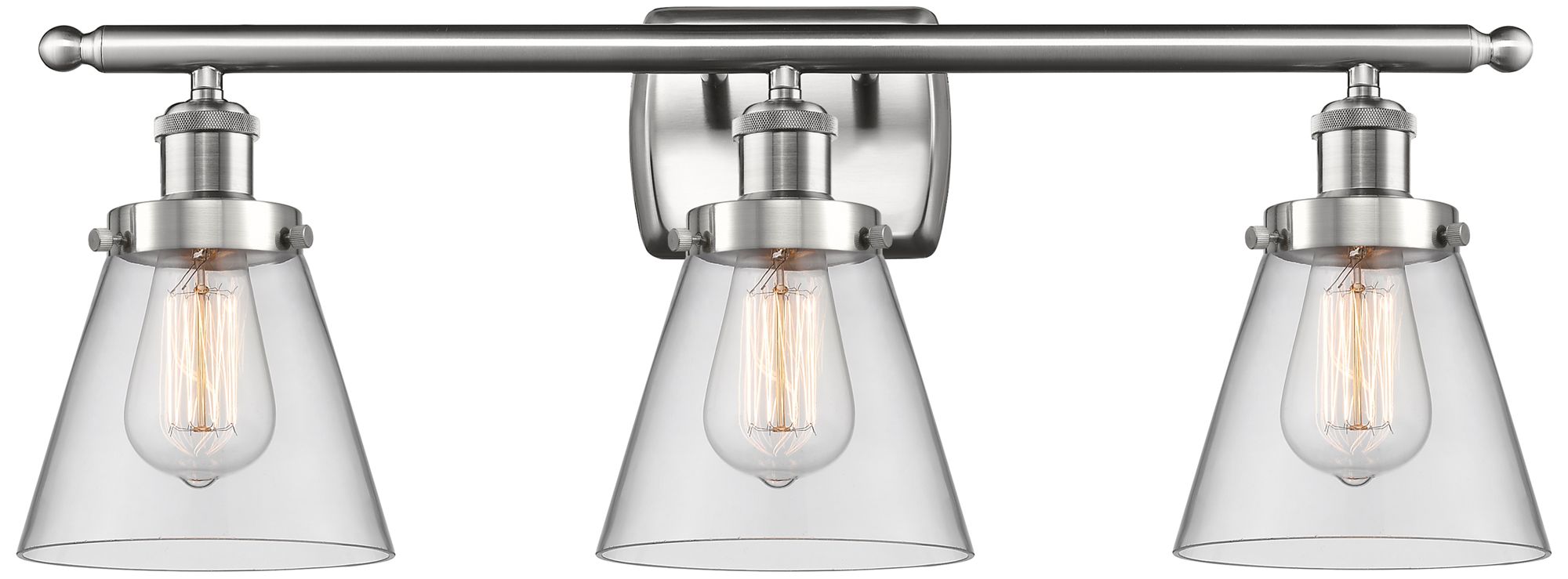 Ballston Urban Cone 6"W 3 Light Brushed Nickel Bath Light w/ Clear Sha
