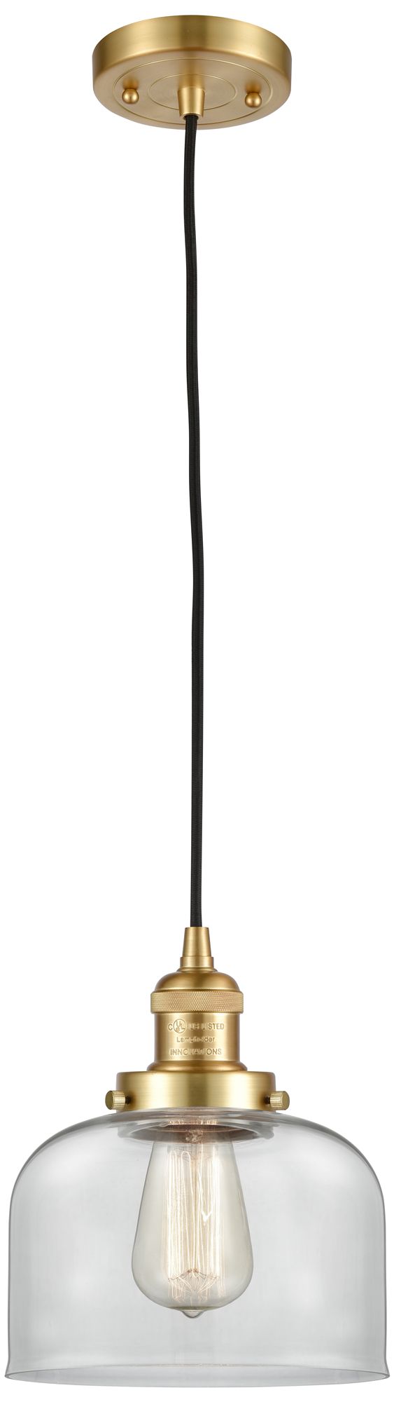 Franklin Restoration Bell 8" Satin Gold Corded Mini Pendant w/ Clear S