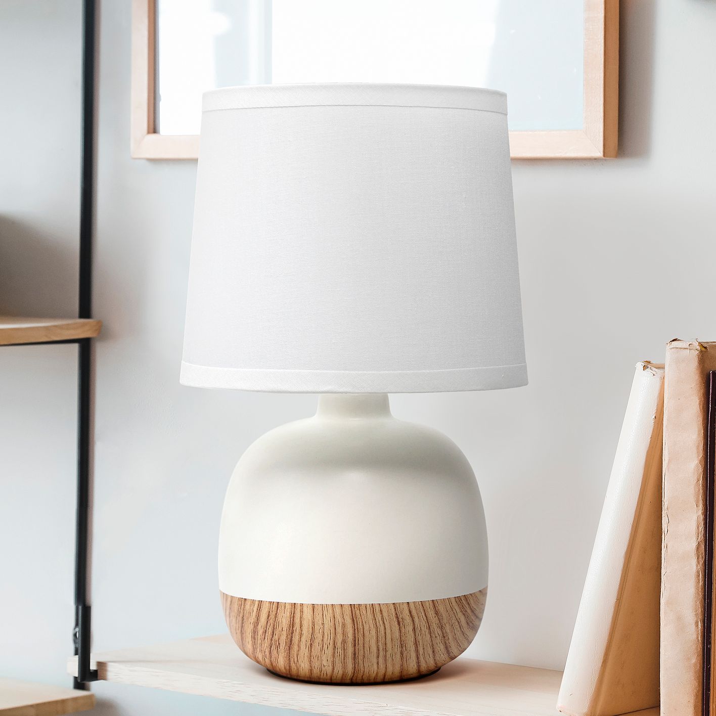 Simple Designs 12" High Faux Wood Off-White Ceramic Accent Table Lamp