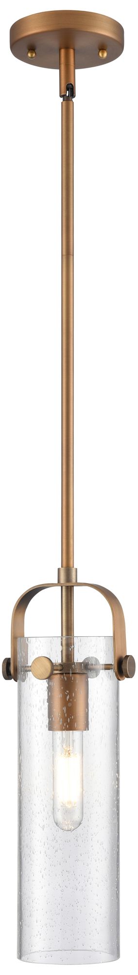 Pilaster II Cylinder 5" Wide Stem Hung Brushed Brass Pendant w/ Seedy