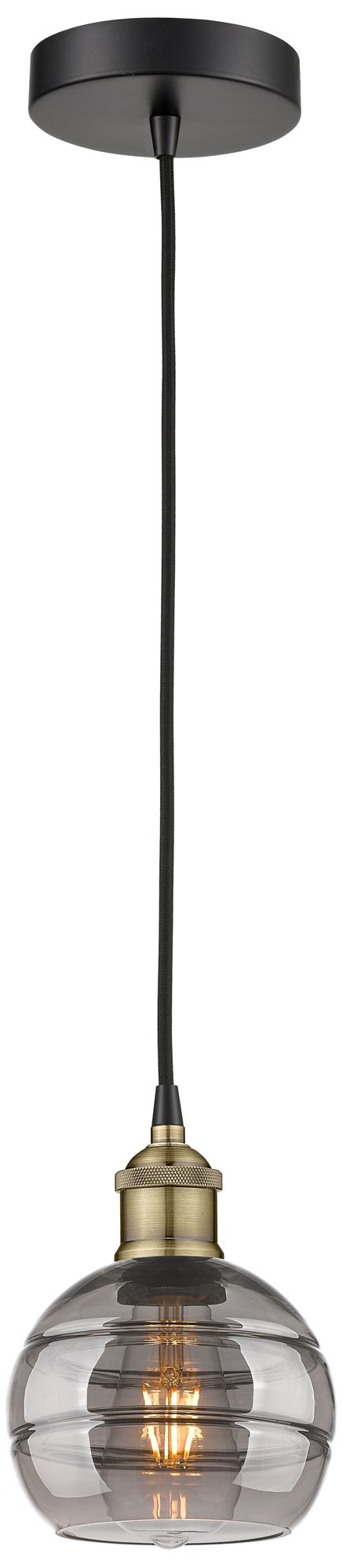 Edison Rochester 5.88"W Black Brass Corded Mini Pendant w/ Smoke Shade