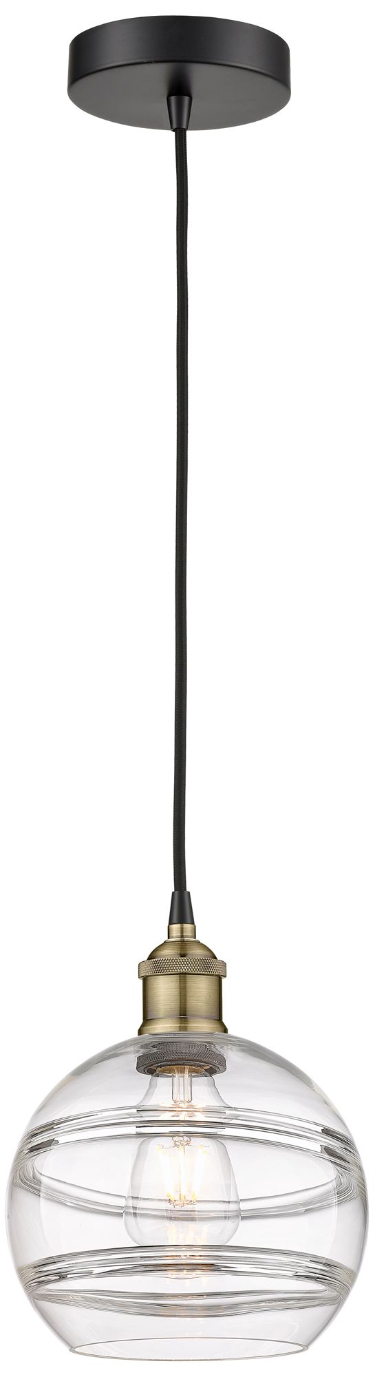 Edison Rochester 8"W Black Antique Brass Corded Mini Pendant w/ Clear