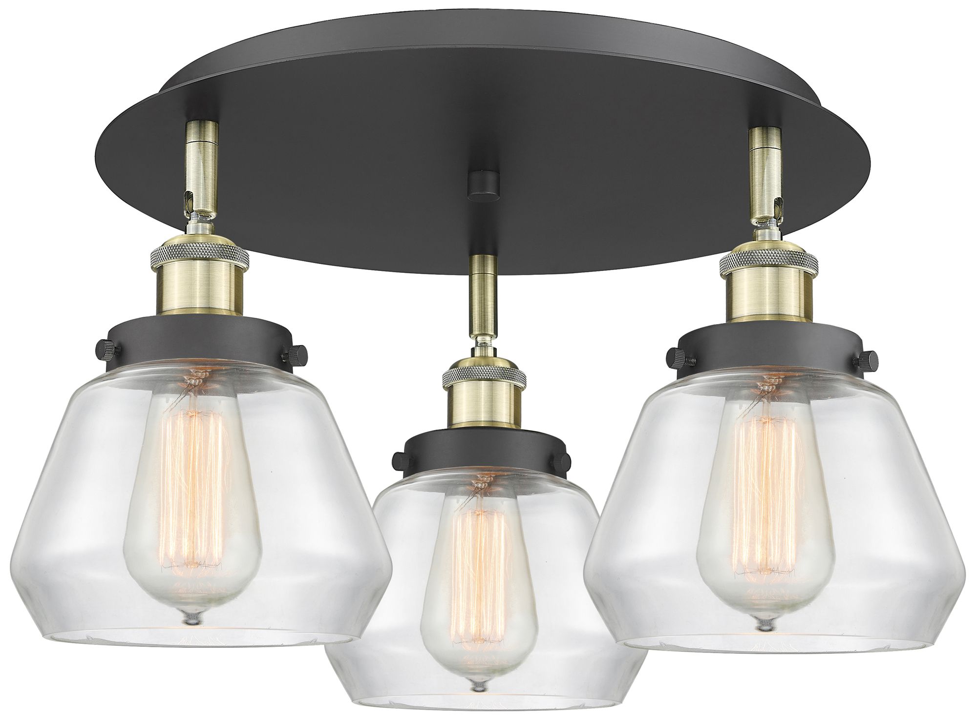 Fulton 18.25"W 3 Light Black Antique Brass Flush Mount w/ Clear Glass