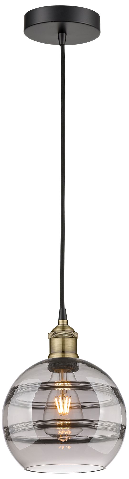Edison Rochester 8"W Black Brass Corded Mini Pendant w/ Light Smoke Sh