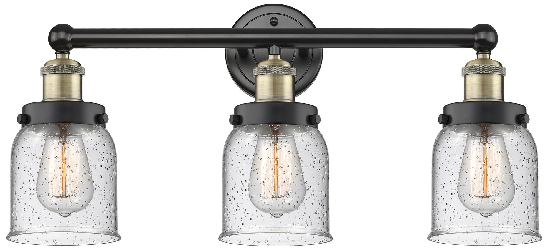Edison Small Bell 24.5"W 3 Light Black Brass Bath Light With Seedy Sha