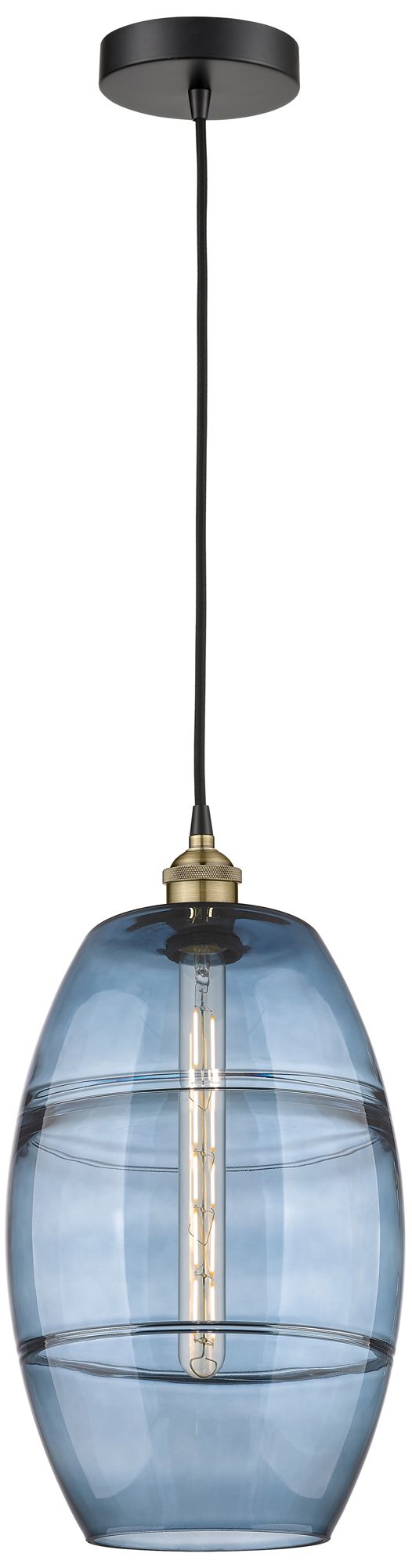 Edison Vaz 10"W Black Antique Brass Corded Mini Pendant w/ Blue Shade