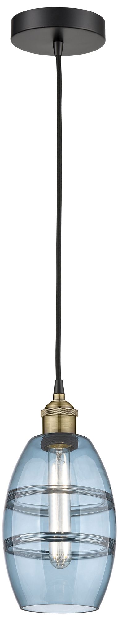 Edison Vaz 5.88"W Black Antique Brass Corded Mini Pendant w/ Blue Shad