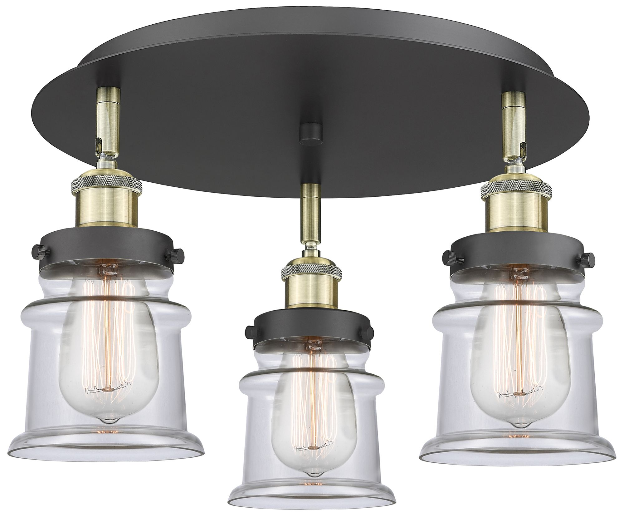 Canton 17"W 3 Light Black Antique Brass Flush Mount With Clear Glass S