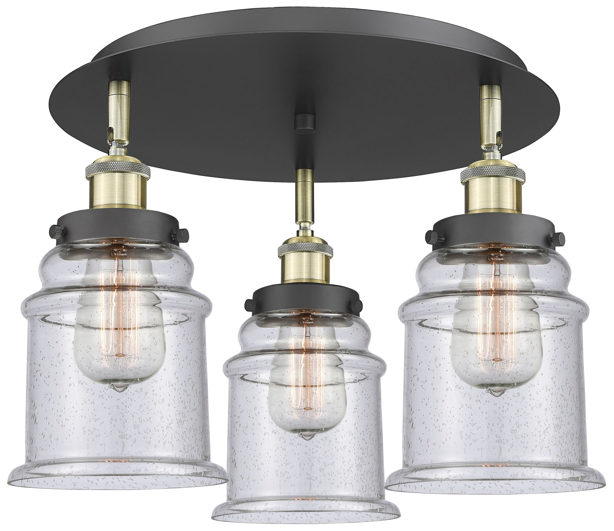 Canton 17.75"W 3 Light Black Antique Brass Flush Mount w/ Seedy Glass