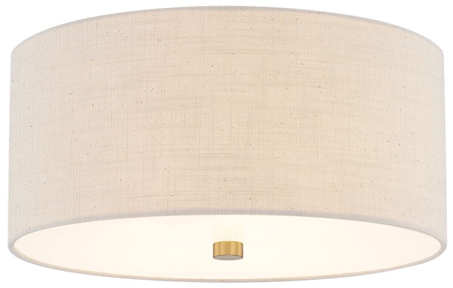 Justice Design Classic 14" Wide Brass and Cream Linen Ceiling Light