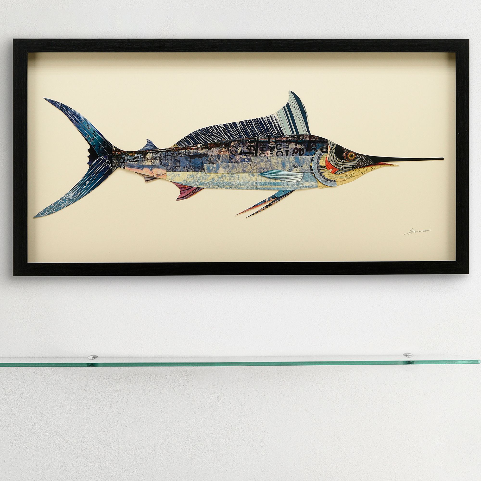 Blue Marlin 33" Wide Dimensional Collage Framed Wall Art