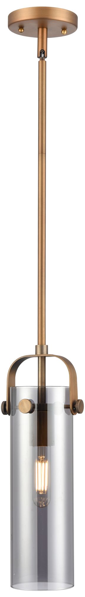 Pilaster II Cylinder 5" Wide Stem Hung Brushed Brass Pendant w/ Smoke