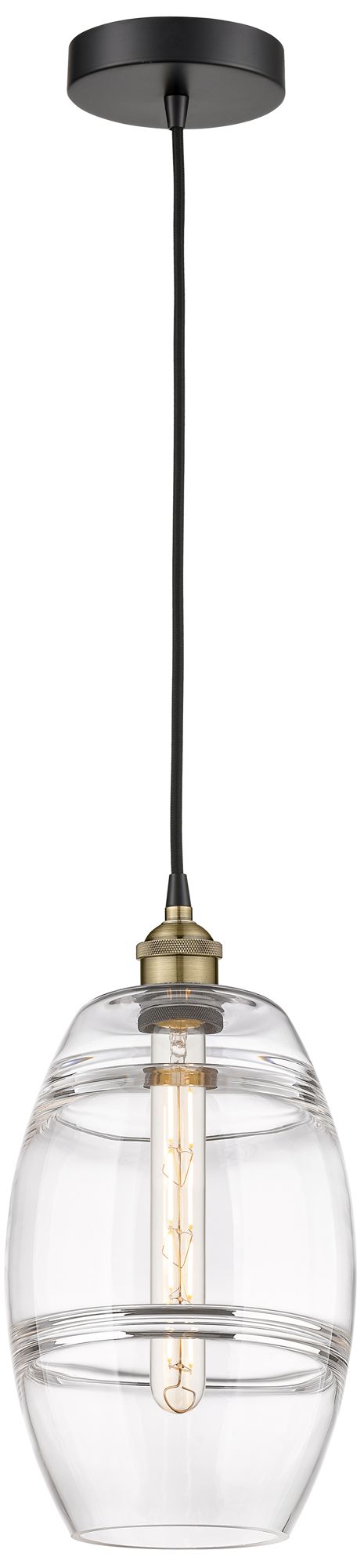 Edison Vaz 8" Wide Black Antique Brass Corded Mini Pendant w/ Clear Sh