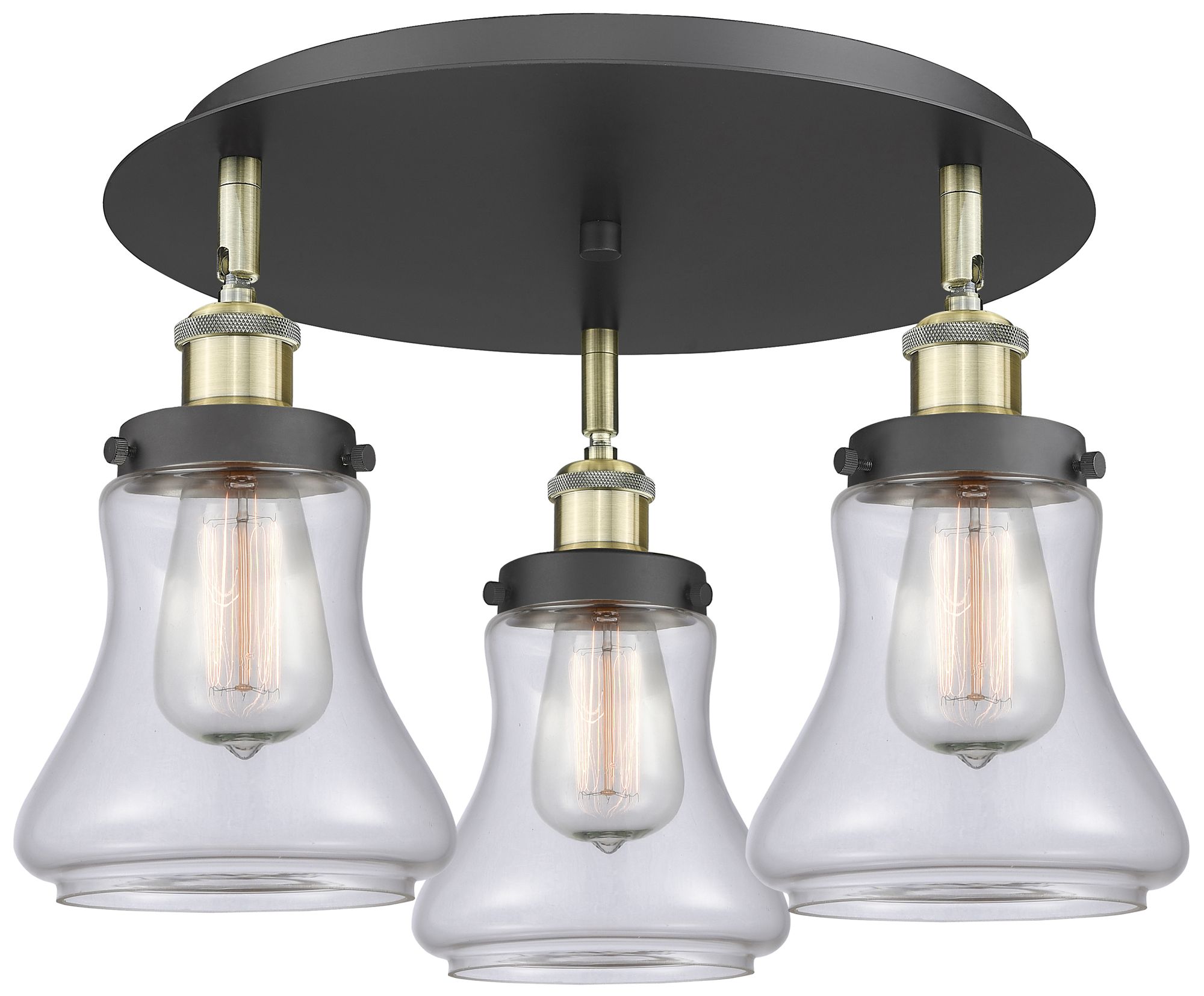 Bellmont 17.75"W 3 Light Black Antique Brass Flush Mount w/ Clear Shad