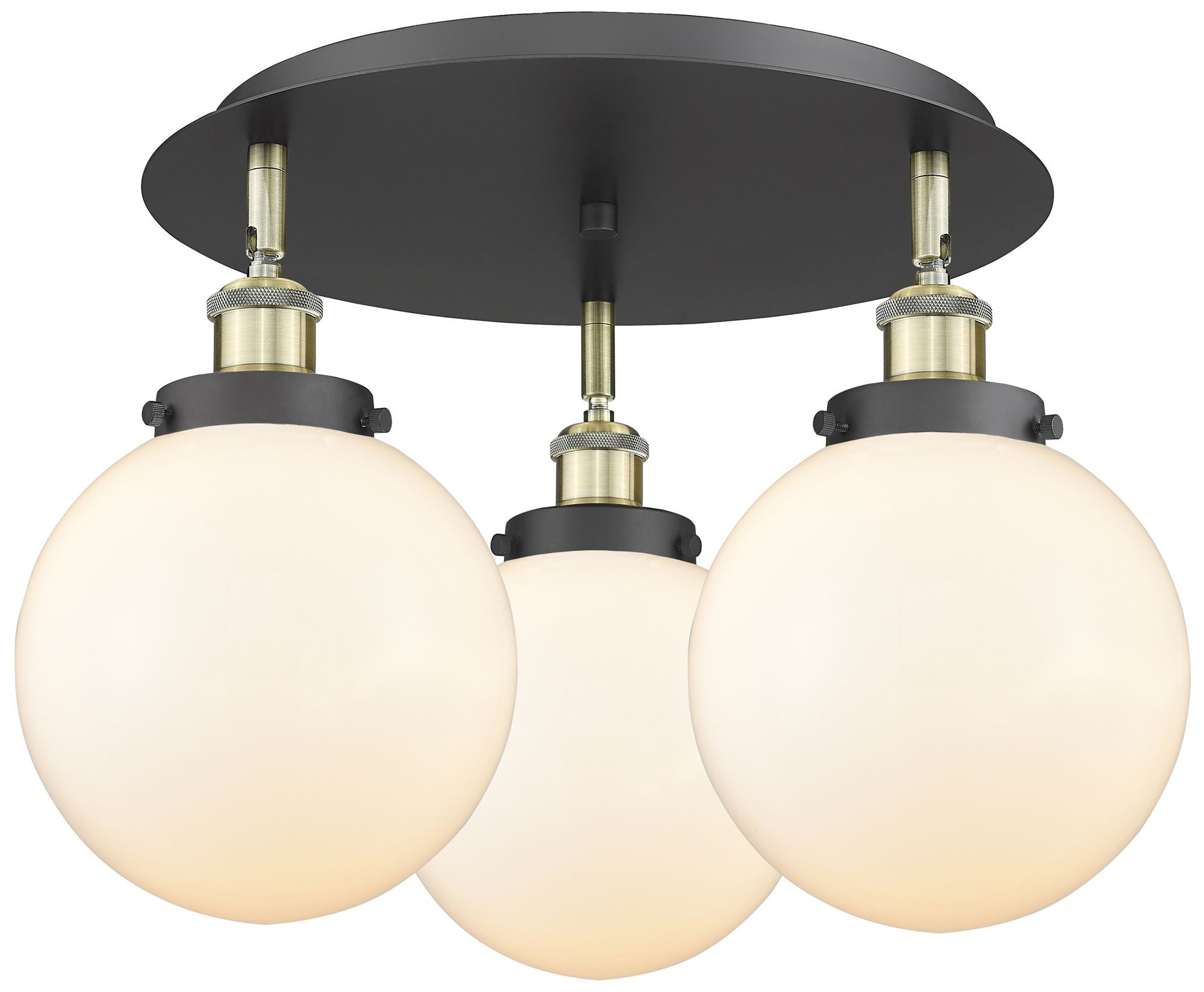 Canton 19.75"W 3 Light Black Antique Brass Flush Mount w/ White Shade