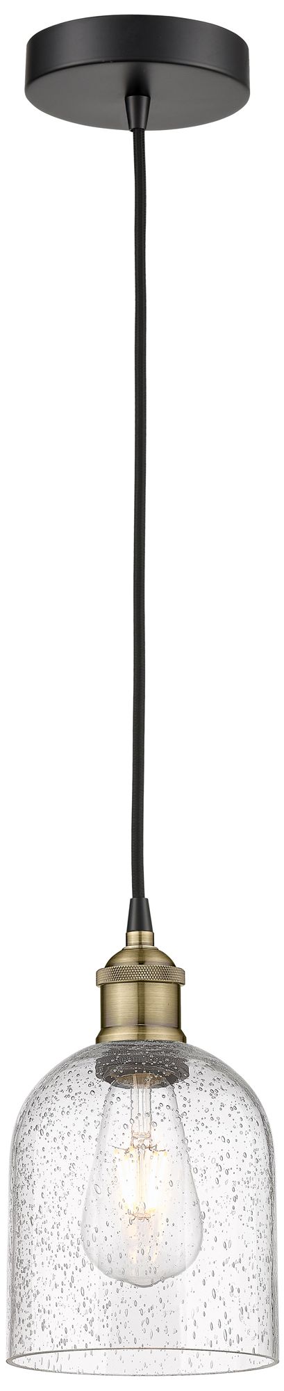 Edison Bella 5.5"W Black Antique Brass Corded Mini Pendant w/ Seedy Sh