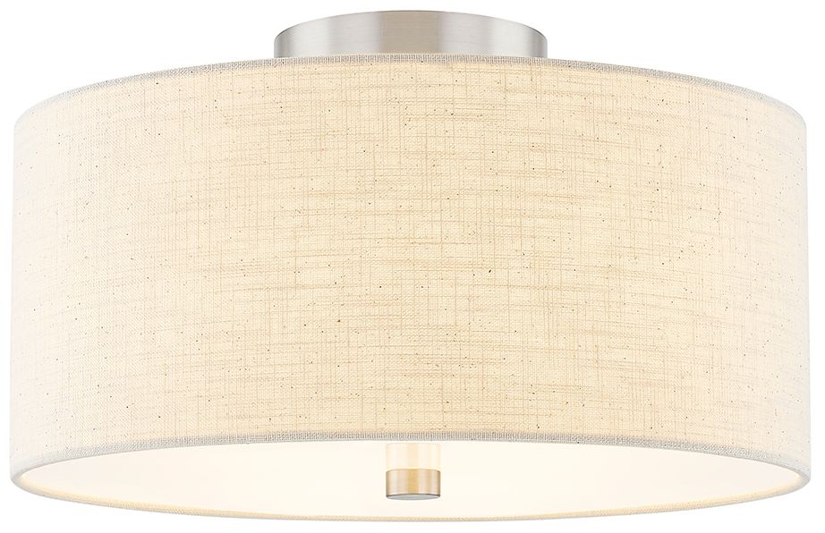 Textile 14"W Classic Drum Brushed Nickel Semi-Flush With Cream Linen S