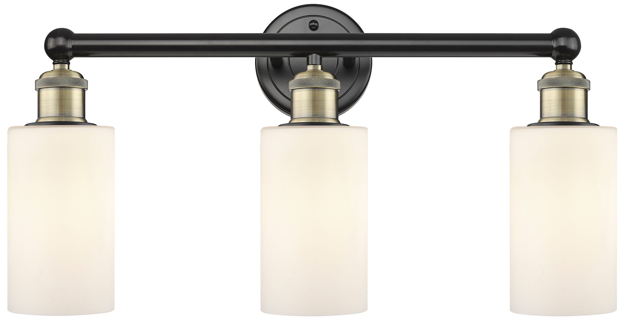 Clymer 21.88"W 3 Light Black Antique Brass Bath Light With White Shade