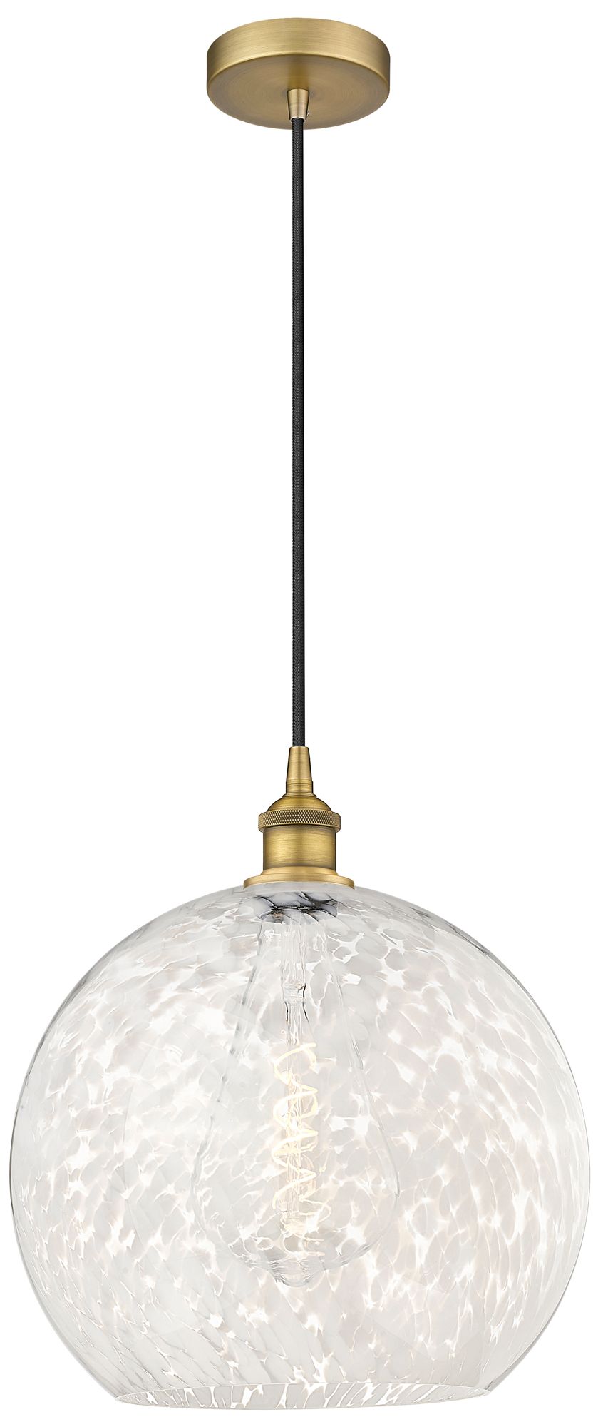 Edison 13.75" Wide Brushed Brass Cord Hung Pendant w/ White Mouchette