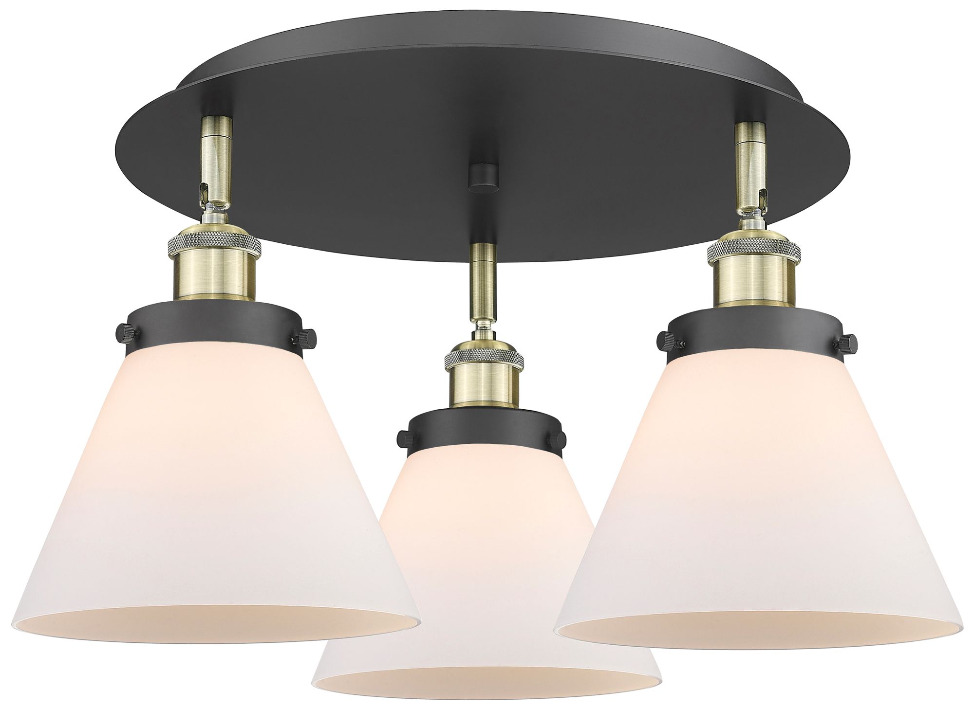 Cone 19.5"W 3 Light Black Antique Brass Flush Mount w/ White Shade