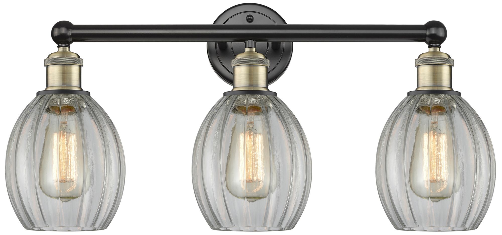 Eaton 23.5"W 3 Light Black Antique Brass Bath Vanity Light With Clear