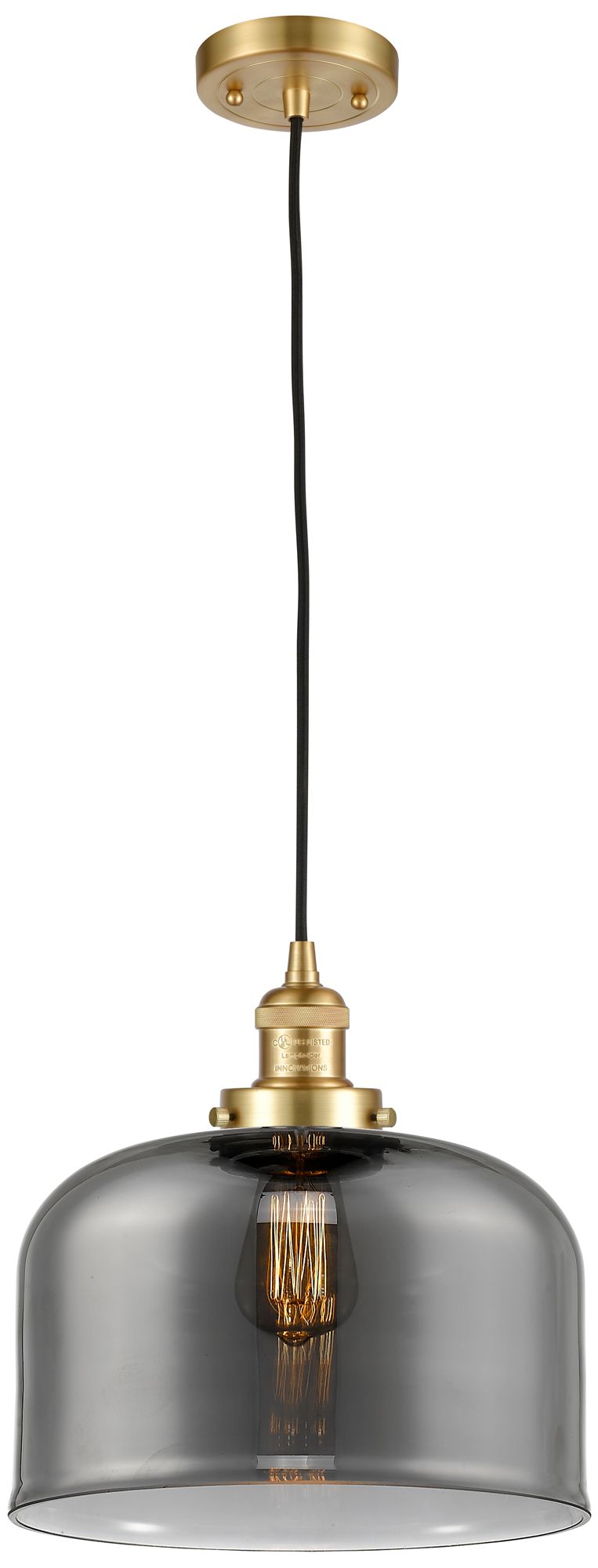 Franklin Restoration Bell 12" Satin Gold Corded Mini Pendant w/ Smoke