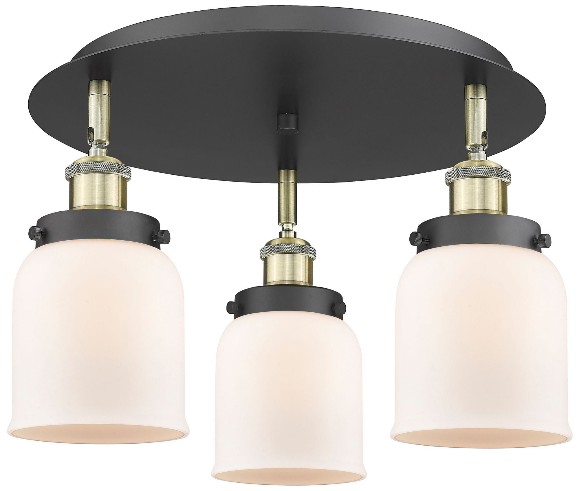 Bell 16.75"W 3 Light Black Antique Brass Flush Mount w/ White Shade