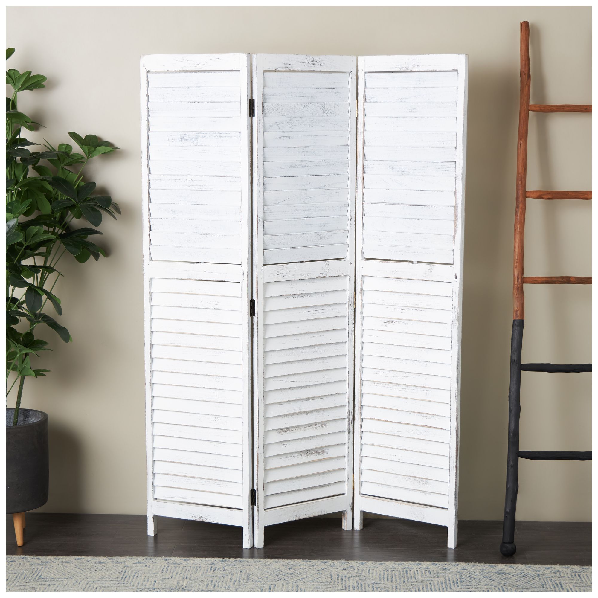 White Wood Rustic Room Divider Screen, 47" x 1" x 67"