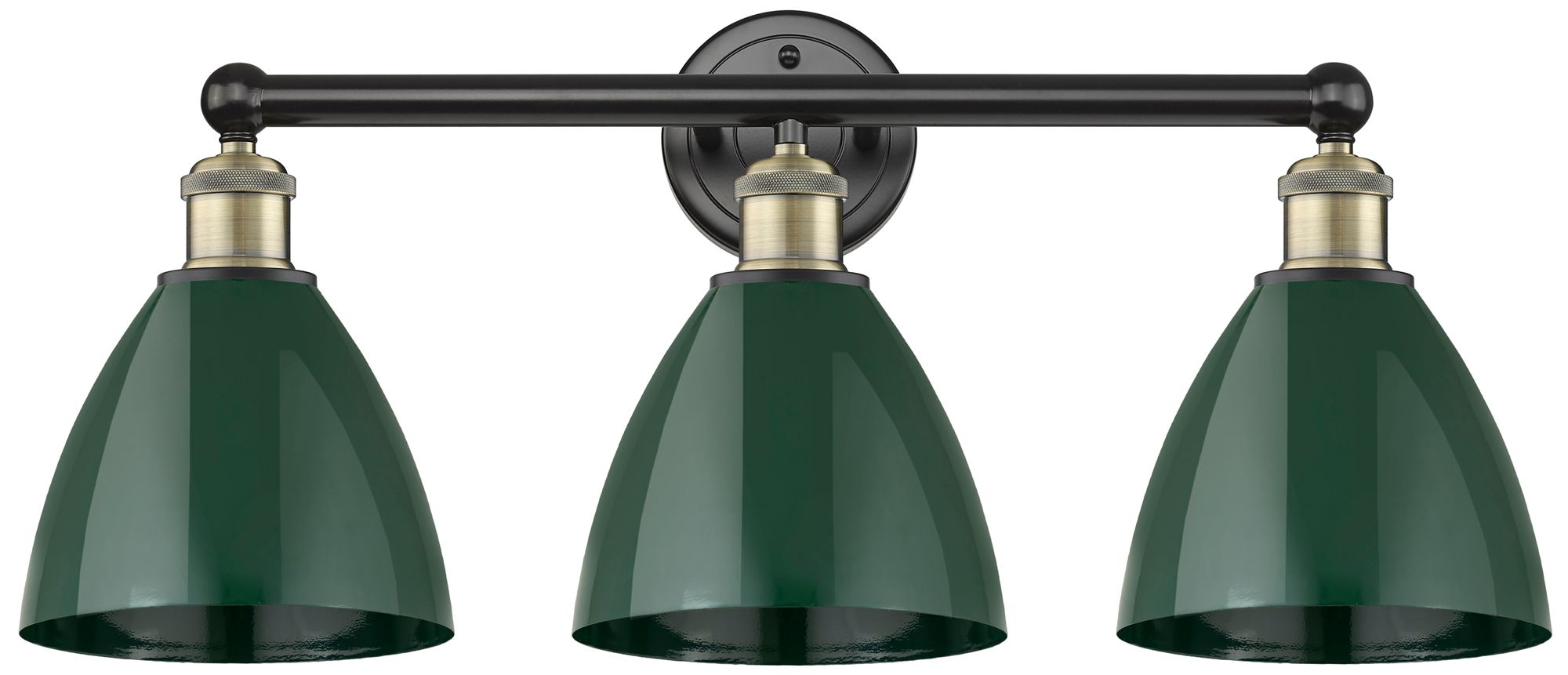 Plymouth Dome 25.5"W 3 Light Black Brass Bath Light With Green Shade