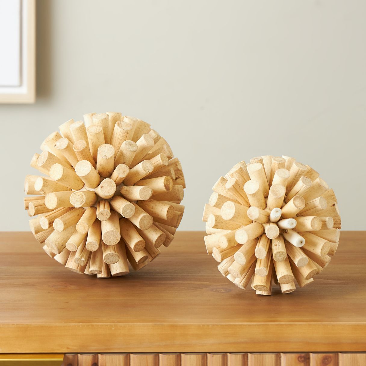 Brown Wood Traditional Orbs & Vase Filler, S/2 7", 6"H