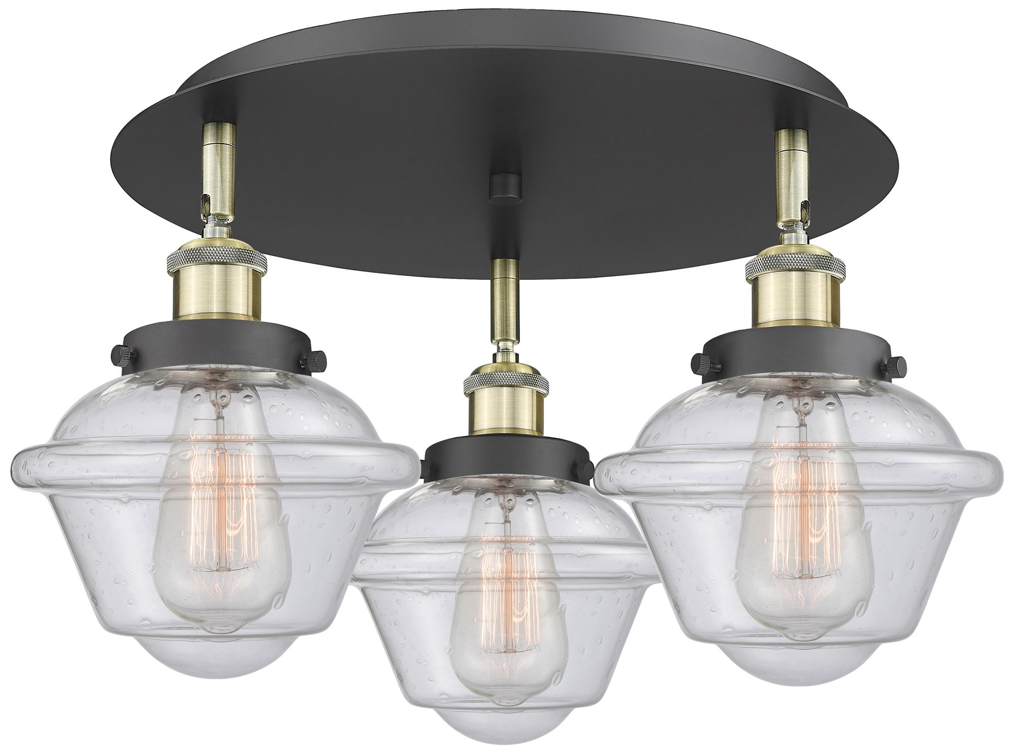 Oxford 18.25"W 3 Light Black Antique Brass Flush Mount w/ Seedy Glass