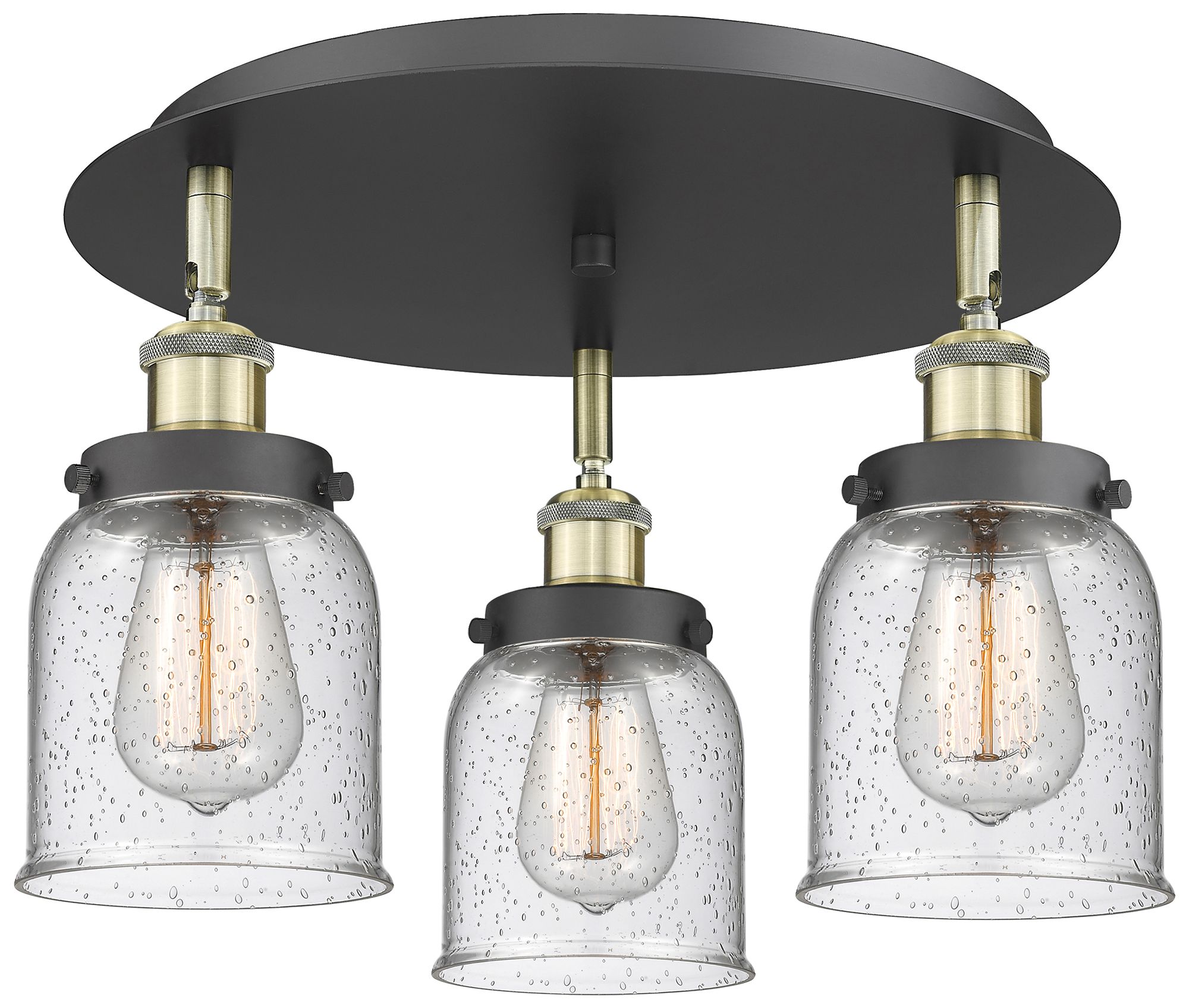 Bell 16.75"W 3 Light Black Antique Brass Flush Mount With Seedy Glass