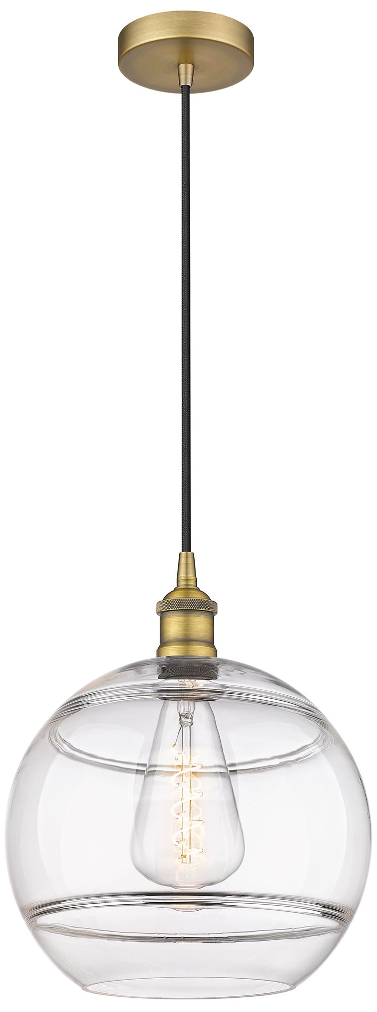 Edison Rochester 12" Wide Brushed Brass Corded Mini Pendant w/ Clear S