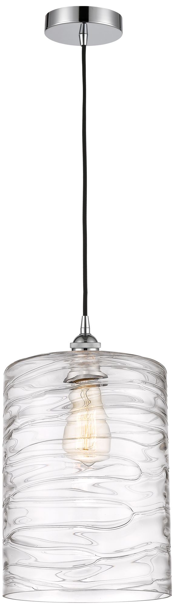 Cobbleskill 9" Mini Pendant - Polished Chrome - Deco Swirl Shade