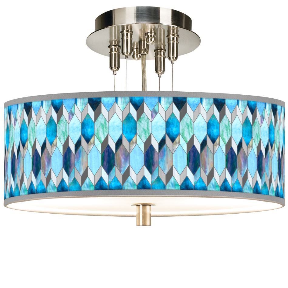 Blue Tiffany-Style Giclee 14" Wide Ceiling Light