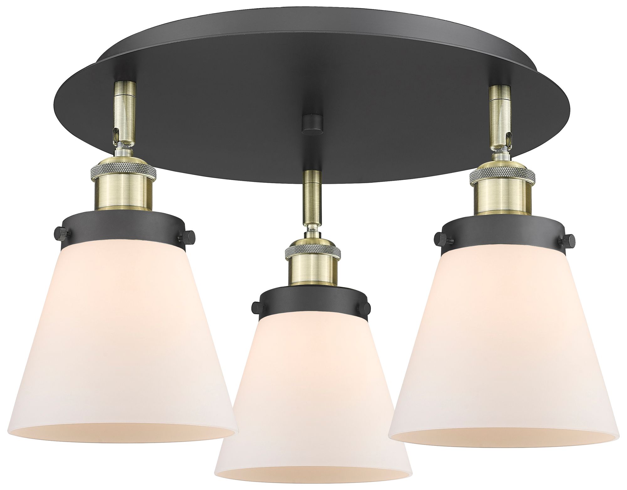 Cone 18"W 3 Light Black Antique Brass Flush Mount w/ White Shade