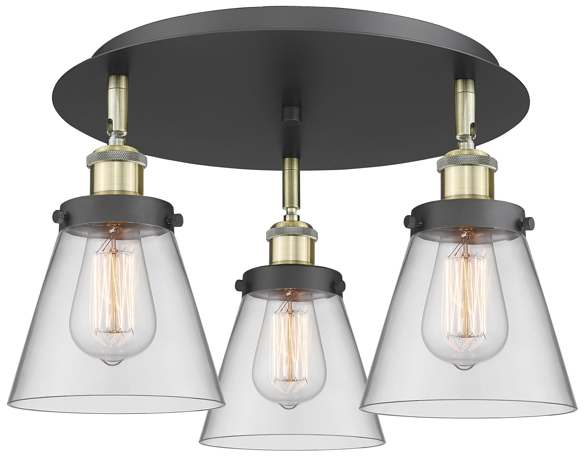 Cone 18"W 3 Light Black Antique Brass Flush Mount With Clear Glass Sha