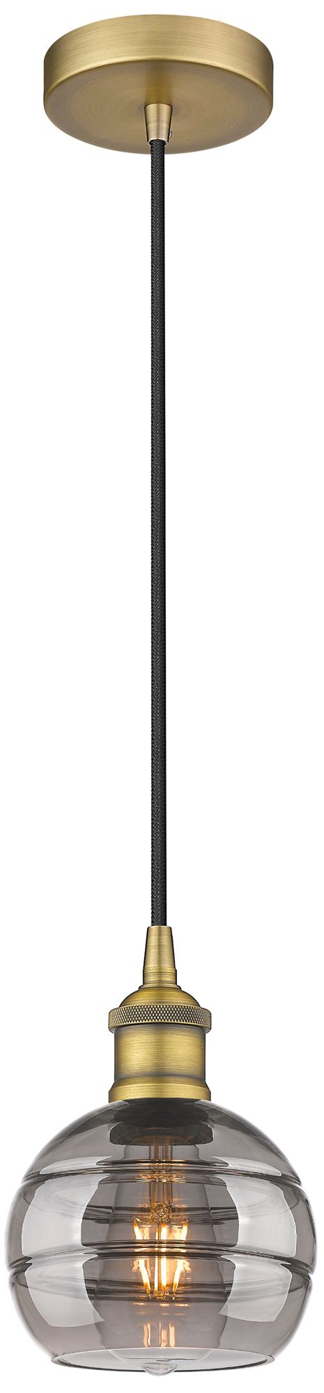 Edison Rochester 5.88"W Brushed Brass Corded Mini Pendant w/ Smoke Sha
