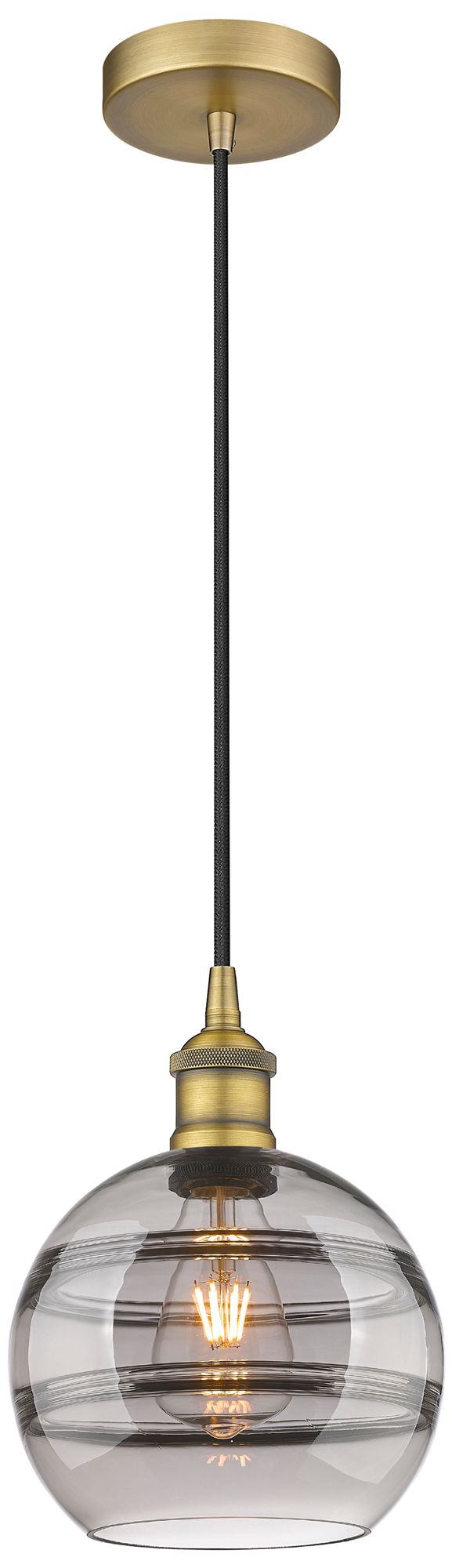Edison Rochester 8"W Brushed Brass Corded Mini Pendant w/ Light Smoke